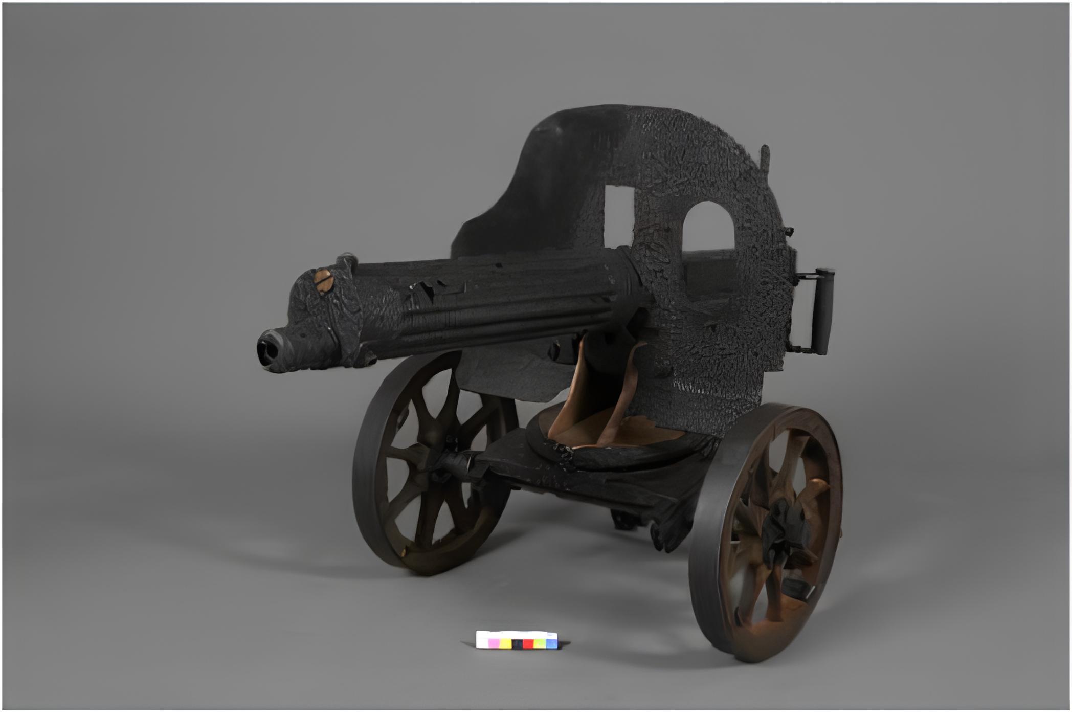 В 2024 году артефакт передали в Международный центр реставрации. В процессе работ специалисты установили, что это пулемет системы «Максим», собранный из деталей разных исторических периодов. Ствольная коробка была изготовлена в 1930-е годы, а колесный лафет (станок) – еще до революции, примерно в 1914 году.