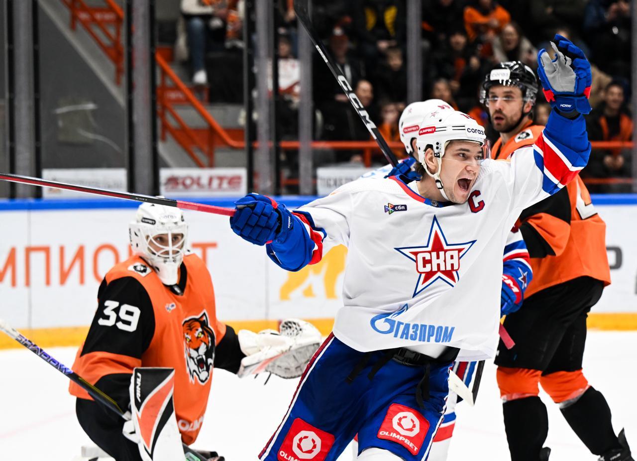 СКА в матче чемпионата Континентальной хоккейной лиги (КХЛ) сегодня в овертайме одолел хабаровский «Амур».