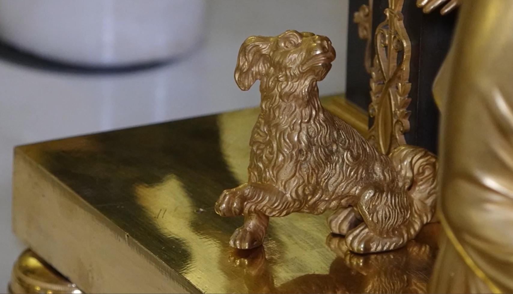 Как выяснилось, у антиквара в галерее имелись аналогичные часы, но с дополнительным элементом – бронзовой собачкой. Такие же часы сохранились в Мальмезоне – бывших владениях Жозефины Богарне, супруги Наполеона I.