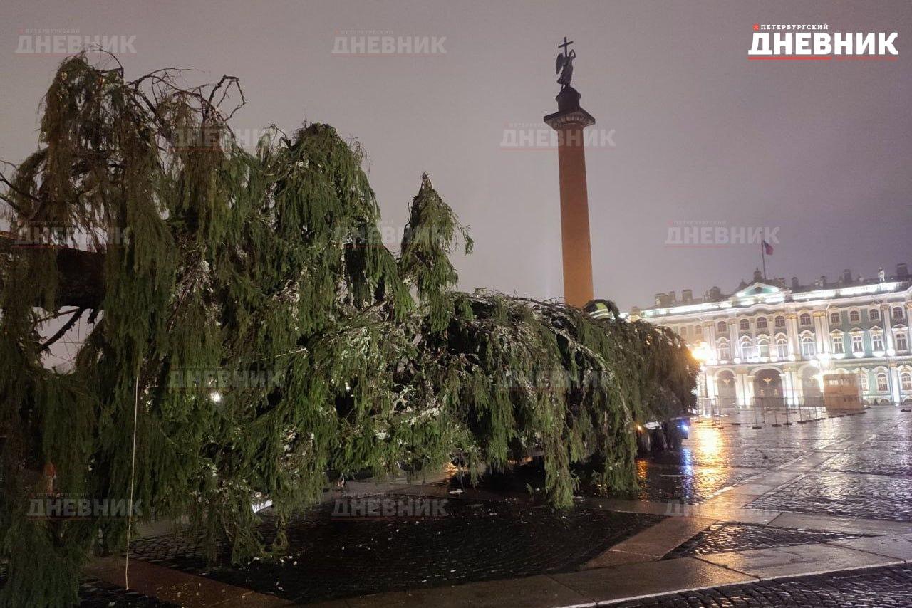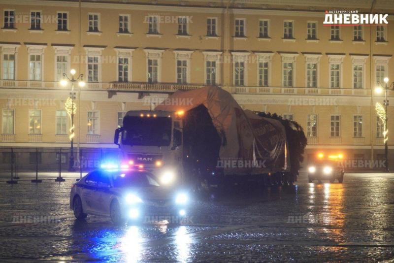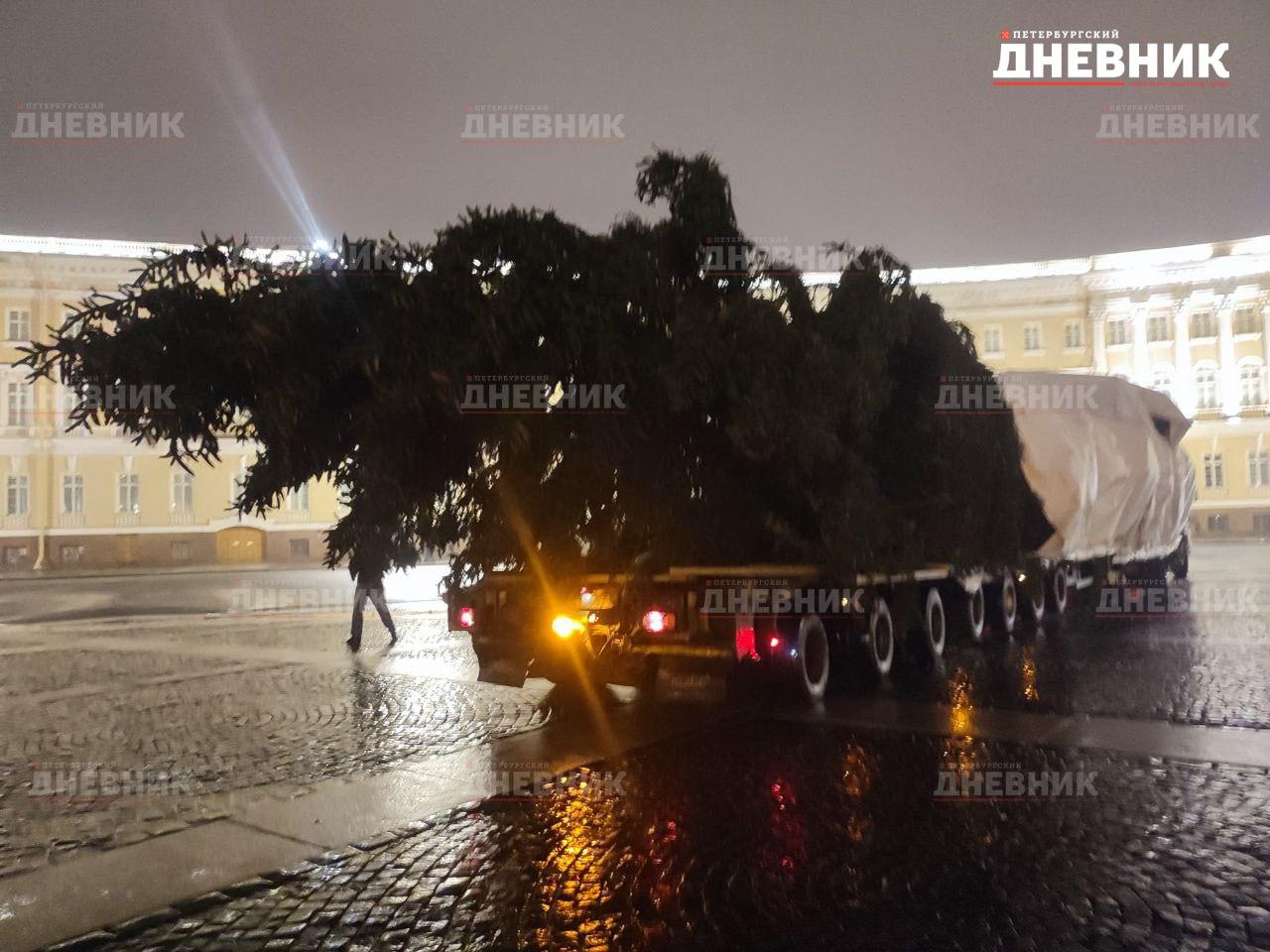На Дворцовую площадь Петербурга доставили главную городскую елку. Девятого декабря ее срубили в Копорском лесничестве Ломоносовского района Ленинградской области.