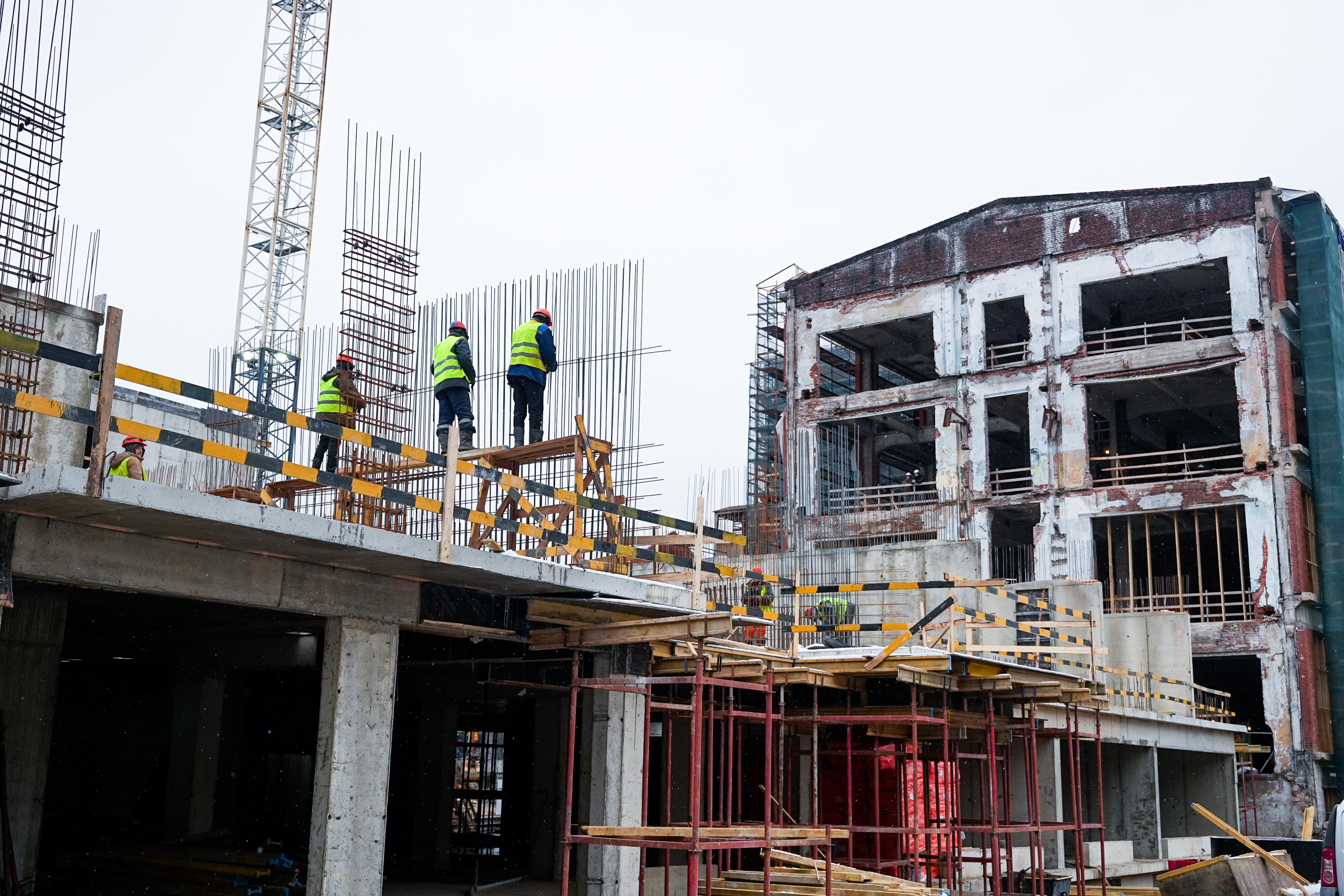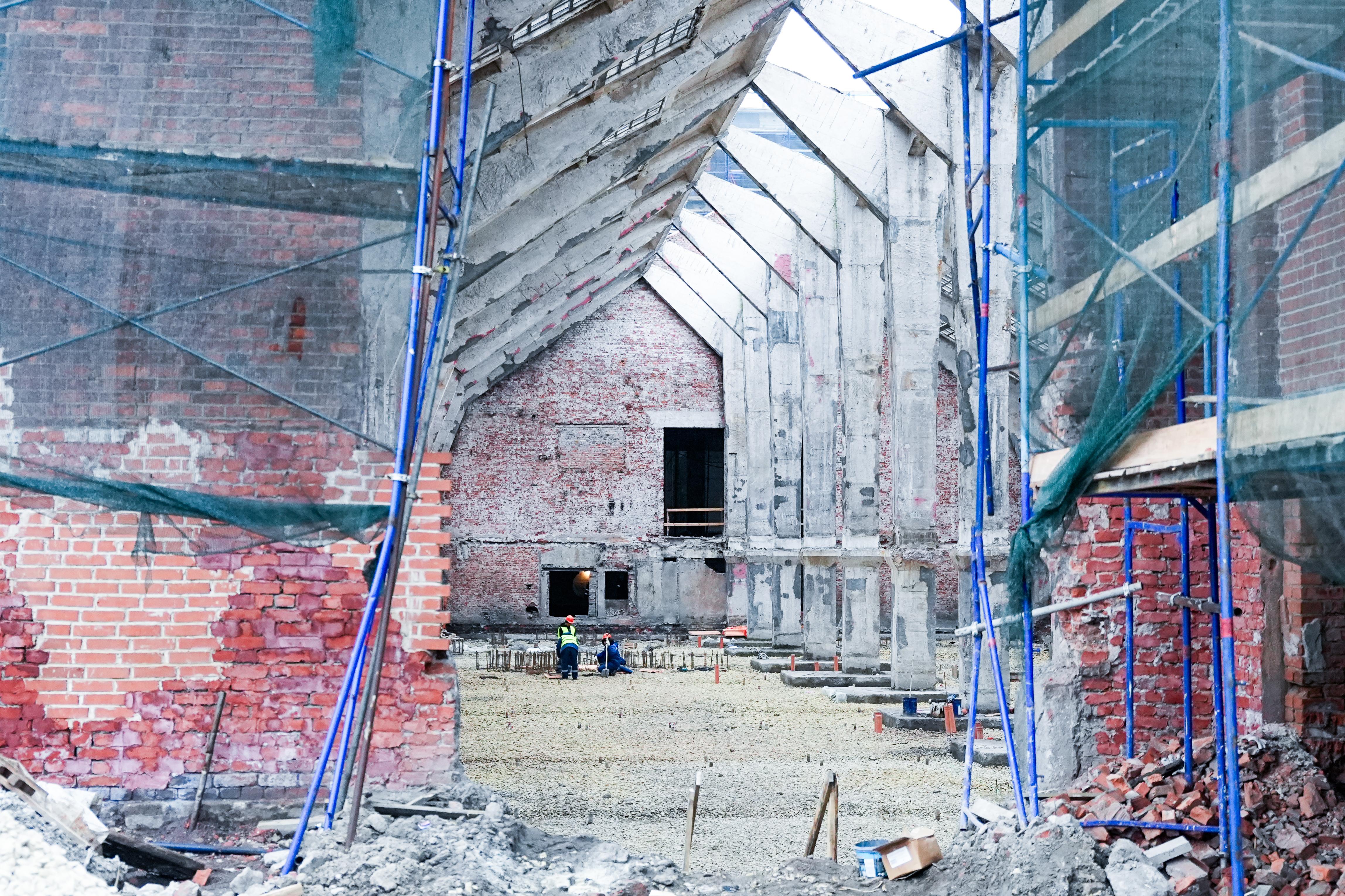 Сейчас в двух исторических фабричных корпусах Мендельсона, отбельном и красильном, уже завершены работы по демонтажу аварийных конструкций. Выполняется усиление железобетонных рам и бетонирование плиты – основания для дальнейшего усиления фундамента зданий. В одном из них потом создадут коворкинг.