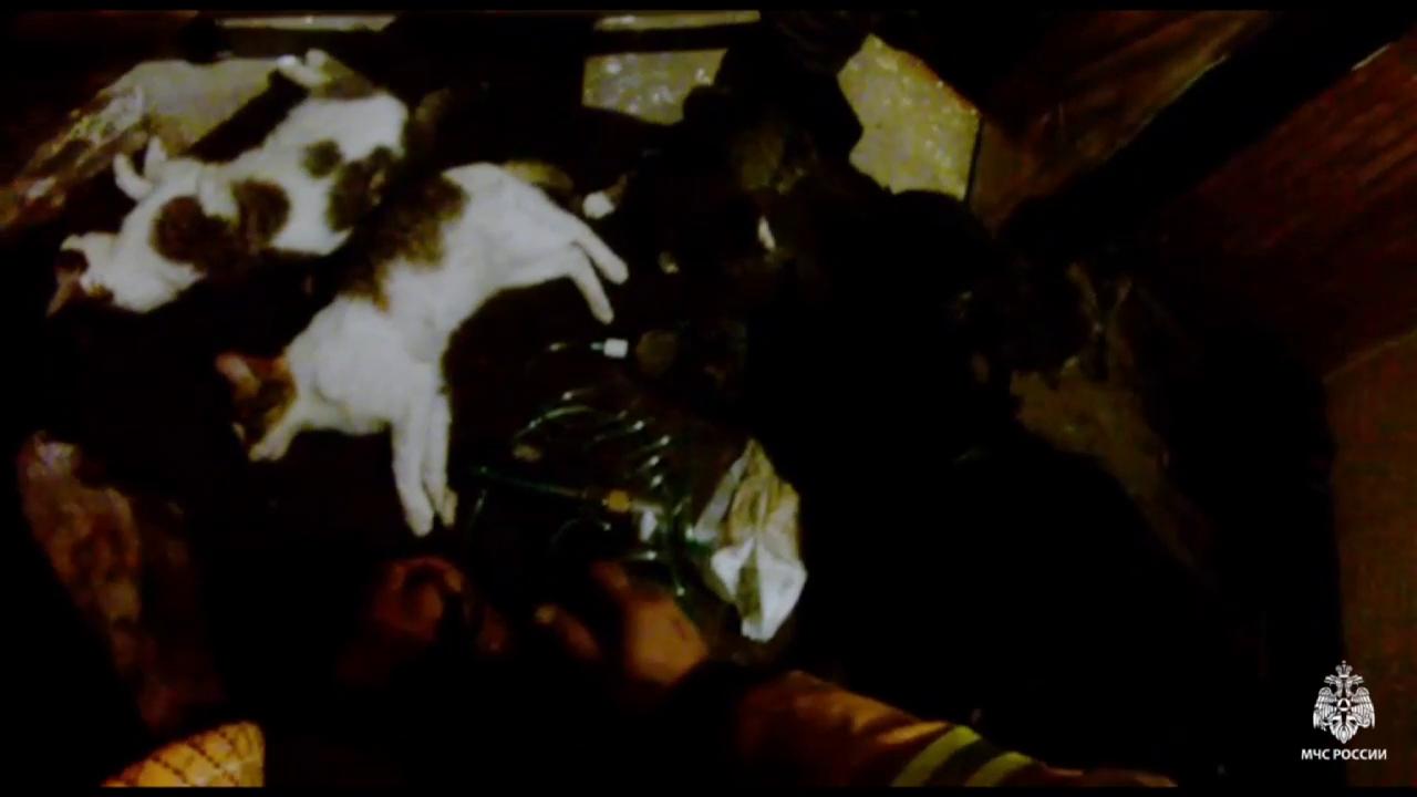 Основными пострадавшими оказались животные, оставшиеся в горевшей квартире. В ходе спасательной операции огнеборцы эвакуировали девять кошек и собаку. Часть питомцев была без сознания из-за отравления угарным газом – пожарные немедленно начали реанимационные мероприятия и смогли стабилизировать их состояние.