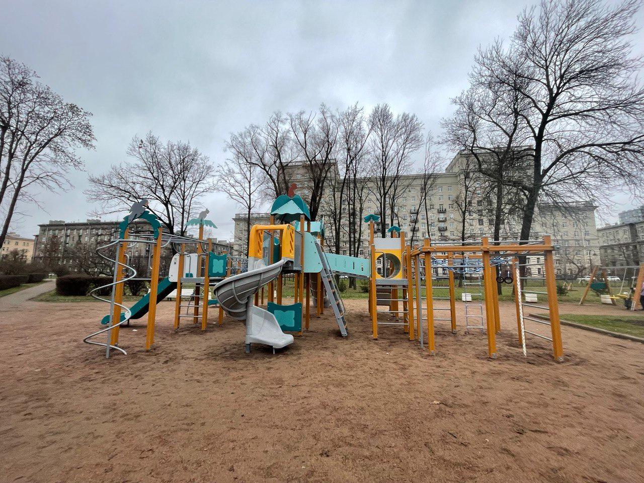 В Петербурге обновили детское оборудование в Московском парке Победы