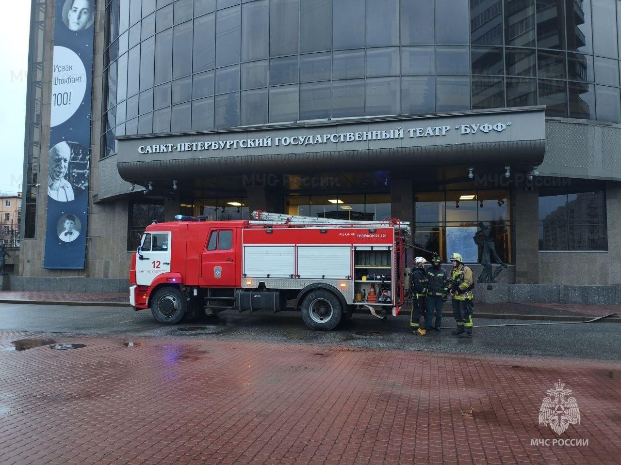 В Санкт-Петербургском театре «Буфф» прошли масштабные пожарно-тактические учения. Спасатели отрабатывали действия по тушению условного пожара и эвакуации людей.