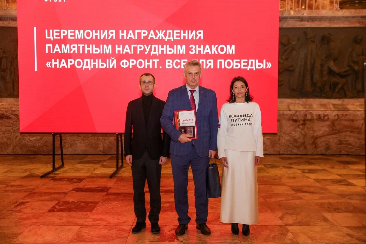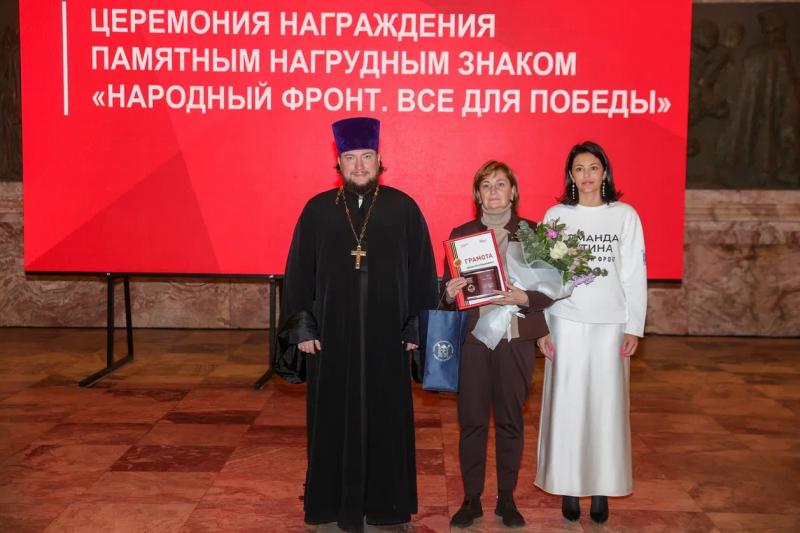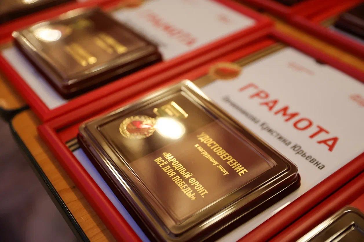 Награждение было завершено общим памятным фото. Церемонии вручения нагрудного знака «Народный фронт. Все для Победы!» проходят во всех регионах России по номинациям: «Сила тыла», «Кулибин-клуб»,«Волонтеры-медики и волонтеры госпиталей», «Помощь семьям мобилизованных», «Корпорации и бизнес – Фронту», «#Мывместе».