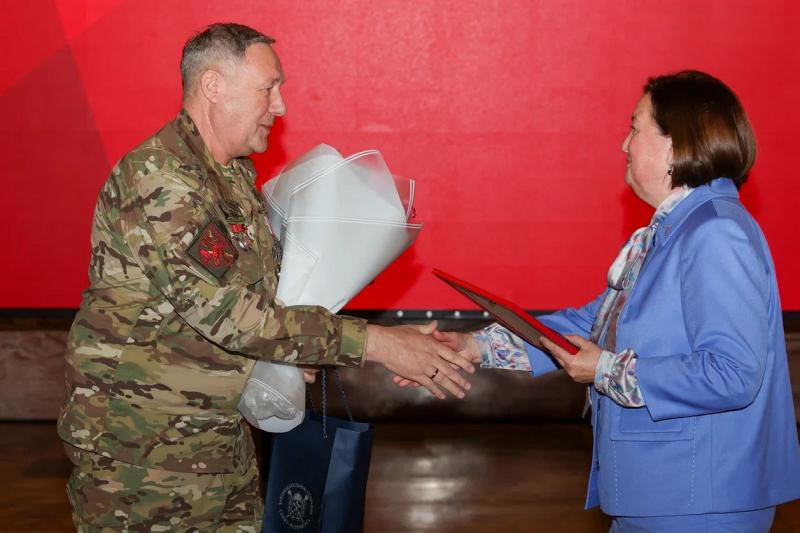 Ветеран военных действий СВО, представитель 123-й бригады «Самарканда» Дмитрий Устин поделился своими мыслями с присутствующими на церемонии: «Вчера был памятный для нас день: был взят город Северск. Это победа всех нас, тех людей, которые, невзирая на трудности, поставляют средства связи, плетут сети, привозят гуманитарный груз. Каждый километр, который приближает нас к Победе, куется вашими и наши руками».