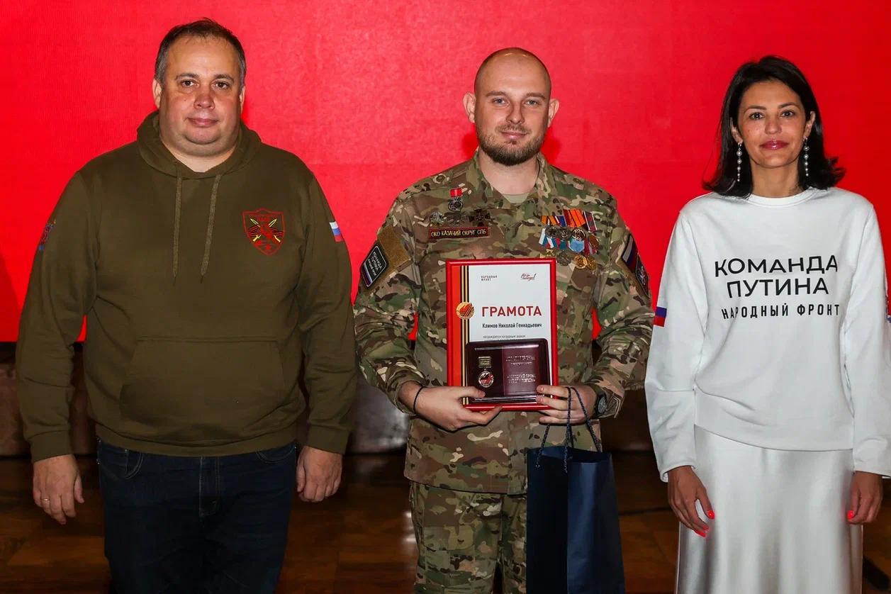 Среди гостей церемонии, получивших памятный нагрудный знак «Народный фронт. Все для Победы!», были глава муниципального образования Измайловское Ольга Бубнова, командир 1486-го гвардейского мотострелкового полка трижды кавалер ордена Мужества гвардии полковник Михаил Коган, директор СПб ГАУ «Дирекция по управлению спортивными сооружениями» Игорь Васильев, член Союза художников России и Союза дизайнеров Санкт-Петербурга Валерия Лошак, руководитель Духовно-просветительского центра Санкт-Петербургской епархии Евгений Малинин, балерина Мариинского театра Евгения Долматова. Люди совершенно разных профессий объединились для единой цели – для помощи бойцам в зоне СВО.