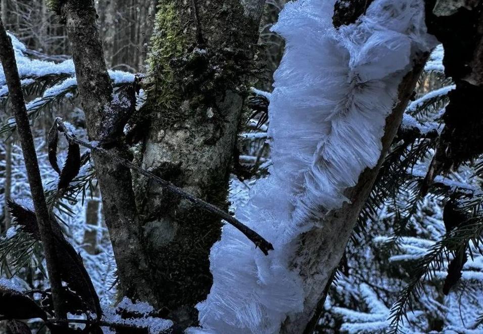 В минувшие выходные в лесах Волосовского района Ленинградской области наблюдалось редкое и уникальное природное явление — «ледяные волосы». Такой лед также называют «ледяной бородой» или «мохнатым льдом».