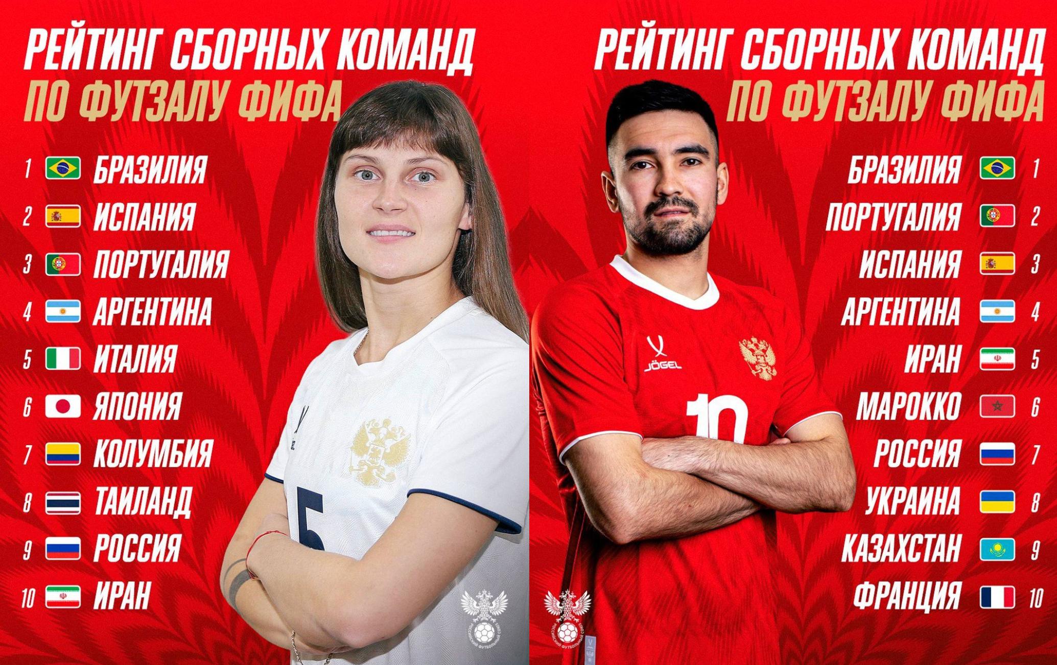 Международная федерация футбола (FIFA) опубликовала обновленный рейтинг национальных команд по футзалу, в котором обе российские сборные подтвердили свое место среди лучших команд мира.