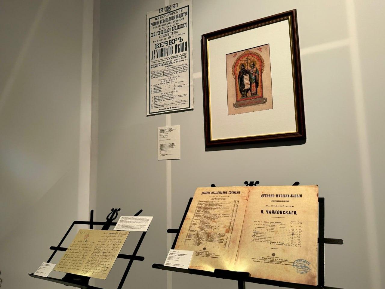 Отдельный зал посвящен духовной музыке. Это пространство, где соприкасались внутренние миры Александра III и Чайковского. Каждый по-своему был погружен в религию. Император обращался к вере в переломные моменты своей жизни, а Чайковский – в поисках музыкального вдохновения.