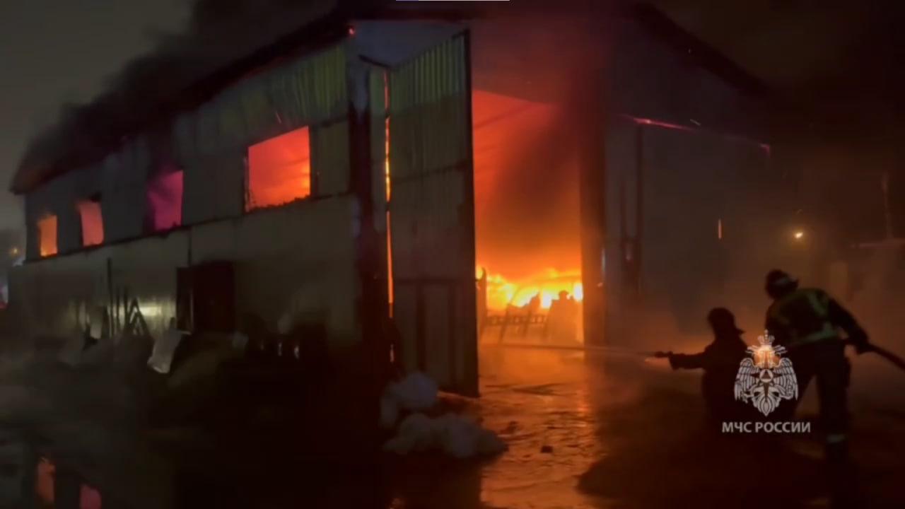Видео: в Гатчине пожарные борются с огнем на двухэтажном складе