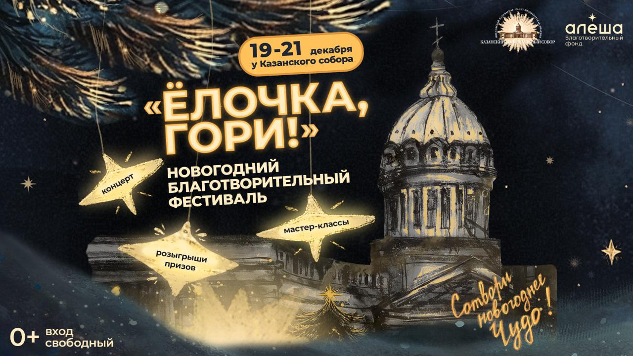 С 19 по 21 декабря на Казанской площади в центре Петербурга пройдёт первый Новогодний благотворительный фестиваль фонда «Алёша» «Елочка, гори!». На мероприятие вход свободный. Начало запланировано на 13:00.