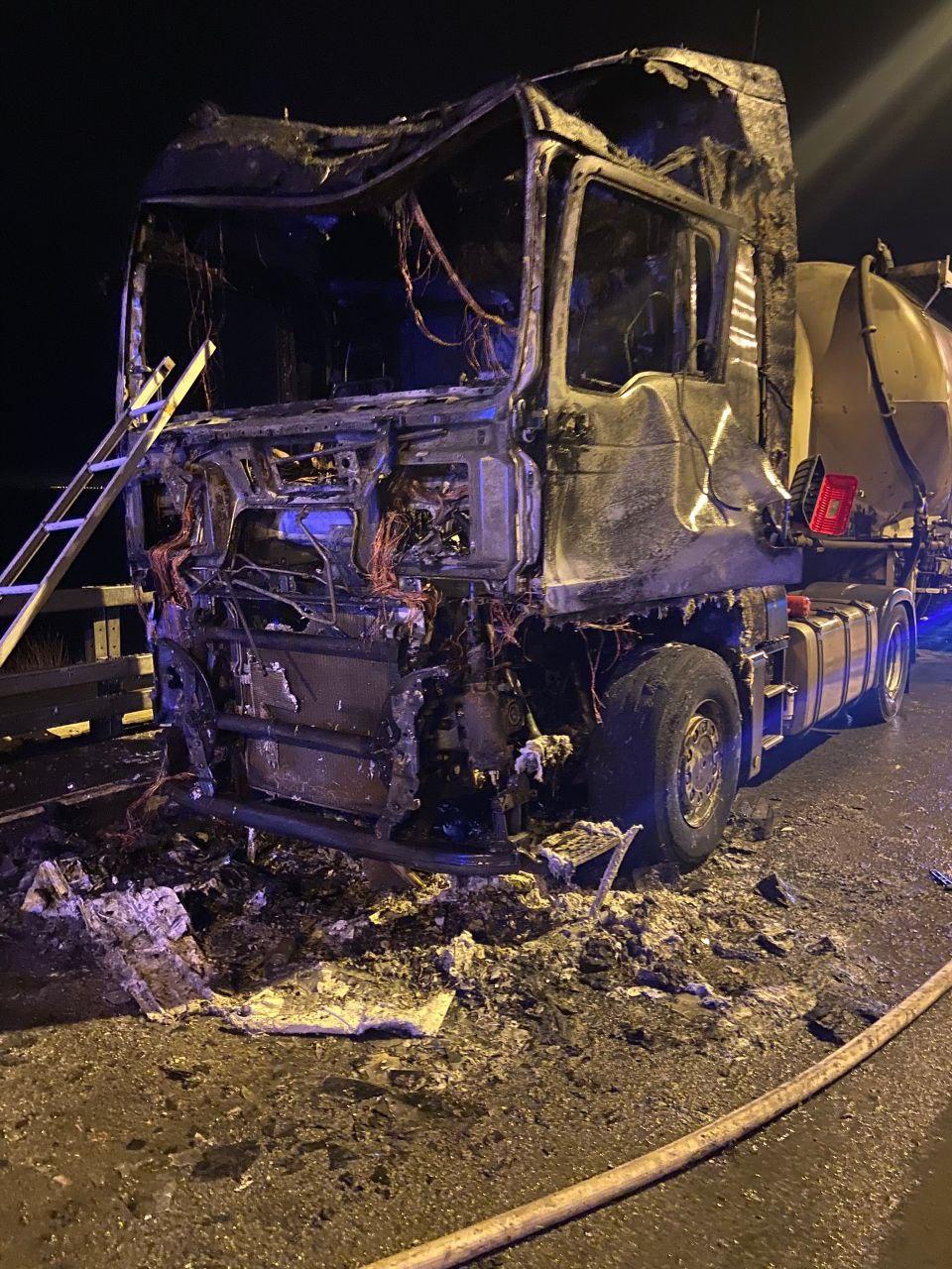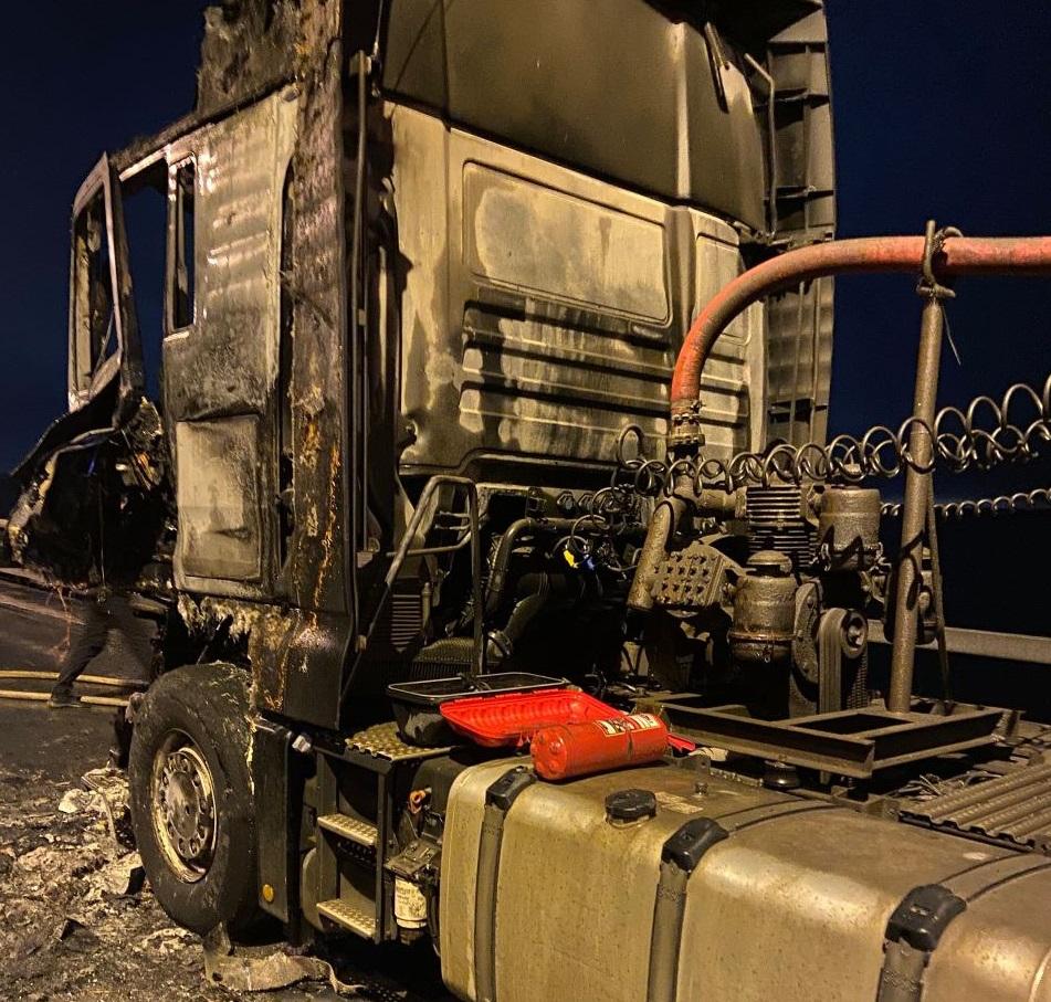 О пожаре стало известно в 21:25. На 139-м километре внутреннего кольца в грузовом автомобиле MAN происходило горение кабины по всей площади.