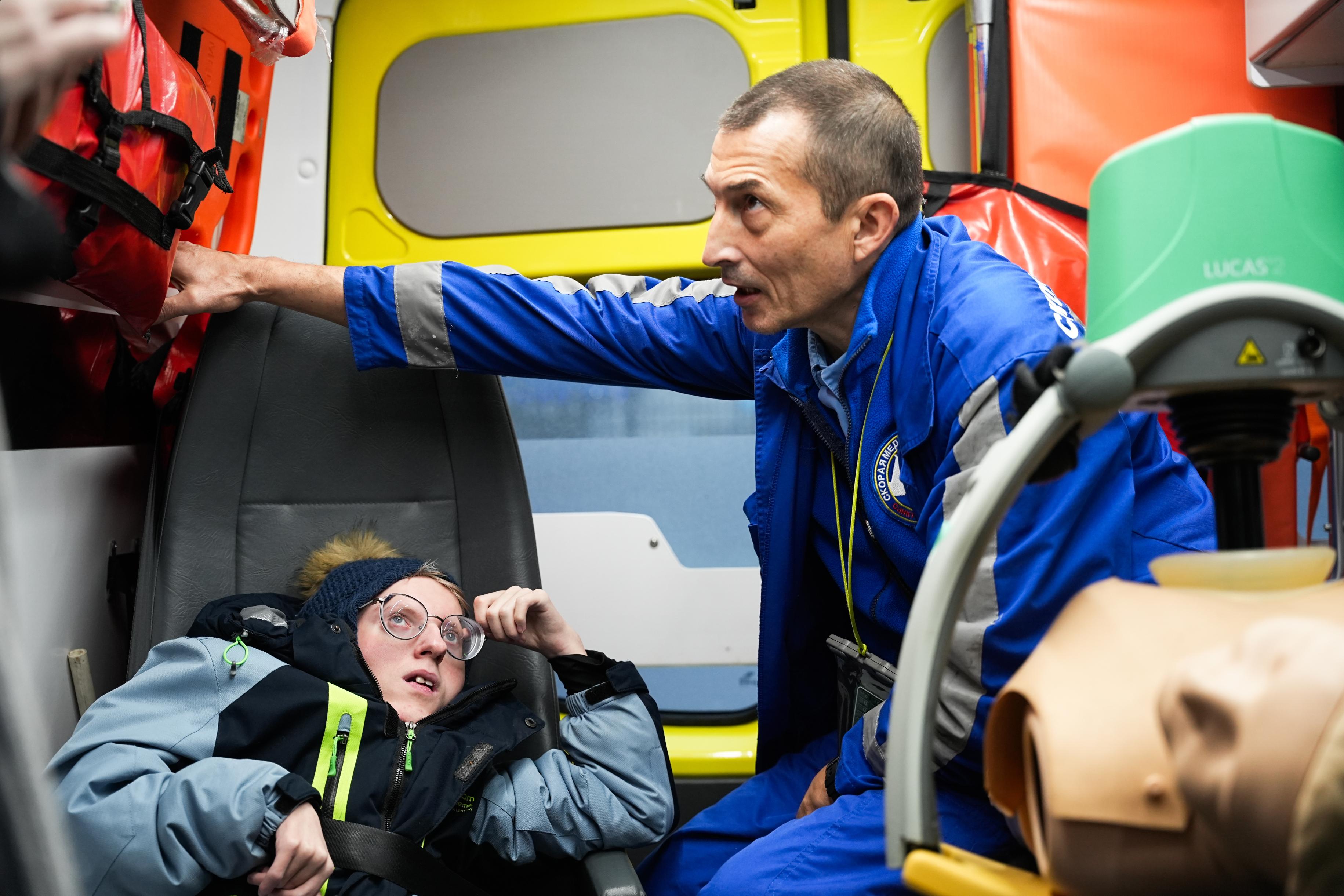 Экскурсию провел врач скорой медицинской помощи Михаил Мамонов, анестезиолог-реаниматолог и победитель конкурса «Лучший по профессии» в номинации «Врач скорой медицинской помощи». Именно он вместе с коллегами показал Ване оснащение автомобиля, рассказал о работе бригады и дал возможность почувствовать себя не пациентом, а исследователем.