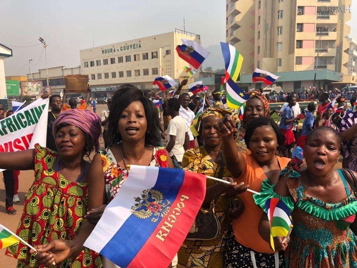 На стене одного из зданий в столице республики Банги изображены Путин и Туадера, пожимающие друг другу руки. За спиной Путина нарисованы российские специалисты, предотвратившие попытку госпереворота в ЦАР в 2020 году, а за спиной президента ЦАР – офицеры местной армии.