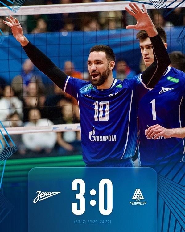 Волейбольный клуб «Зенит СПб» сегодня в матче мужской Суперлиги победил новосибирский «Локомотив».