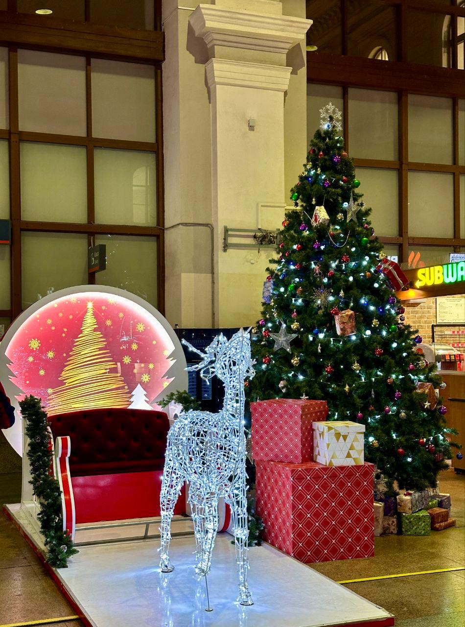 До Нового Года осталось десять дней – железнодорожники продолжают создавать атмосферу праздника на вокзалах Петербурга и Ленобласти.
