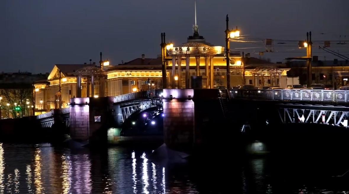 В Петербурге на Дворцовом и Троицком мостах зажгли уникальную подсветку