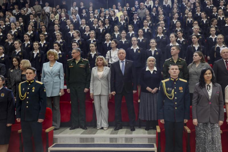 Торжественная встреча состоялась в стенах учебного заведения. «Вы действительно наши наследницы! За вами будущее! А если у страны есть будущее, значит, это великая страна великая! А наша страна – великая Россия! И наш верховный главнокомандующий президент России Владимир Пути делает всё, чтобы у нас, у нашей страны, было будущее», – сказал Александр Беглов.