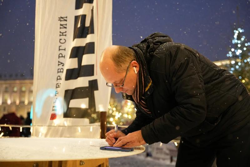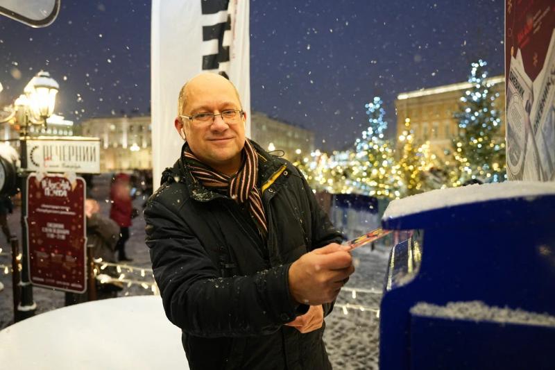 На Дворцовой площади продолжает работать «Новогодняя почта» «Петербургского дневника». Каждый день посвящен отдельной теме. Сегодня он прошел под девизом «Письма добра». Участник акции – начальник отдела по работе со СМИ МФЦ Петербурга Виталий Симонов отправил праздничную открытку подопечному благотворительного фонда «Бумажная птица».