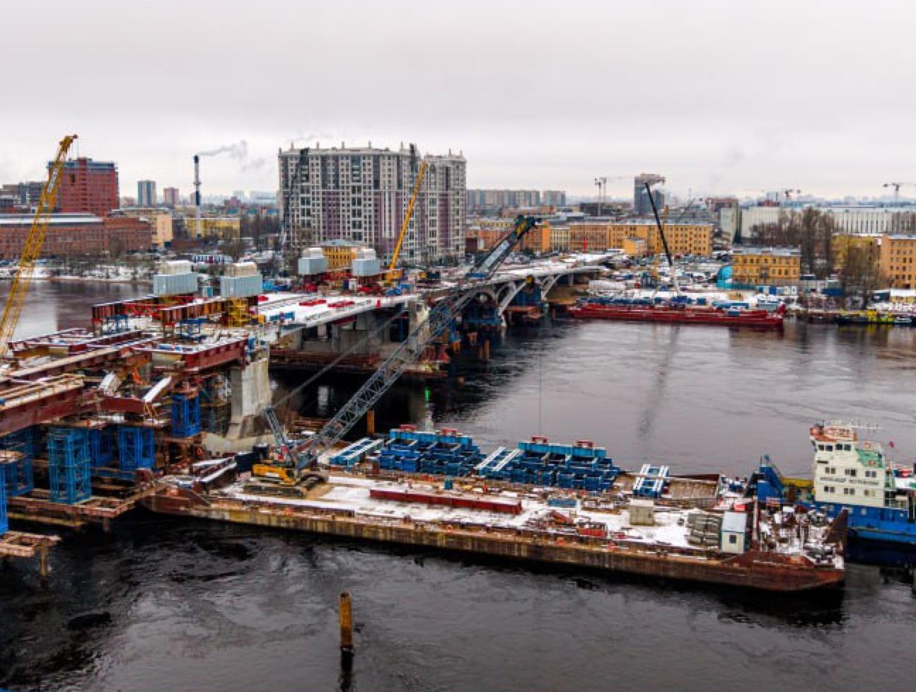 В Комитете по развитию транспортной инфраструктуры Петербурга рассказали о строительстве значимых объектов. Среди них Большой Смоленский мост – первая за 40 лет новая разводная переправа через Неву: вес разводного пролета составляет 800 тонн, протяженность моста – 494 метра.