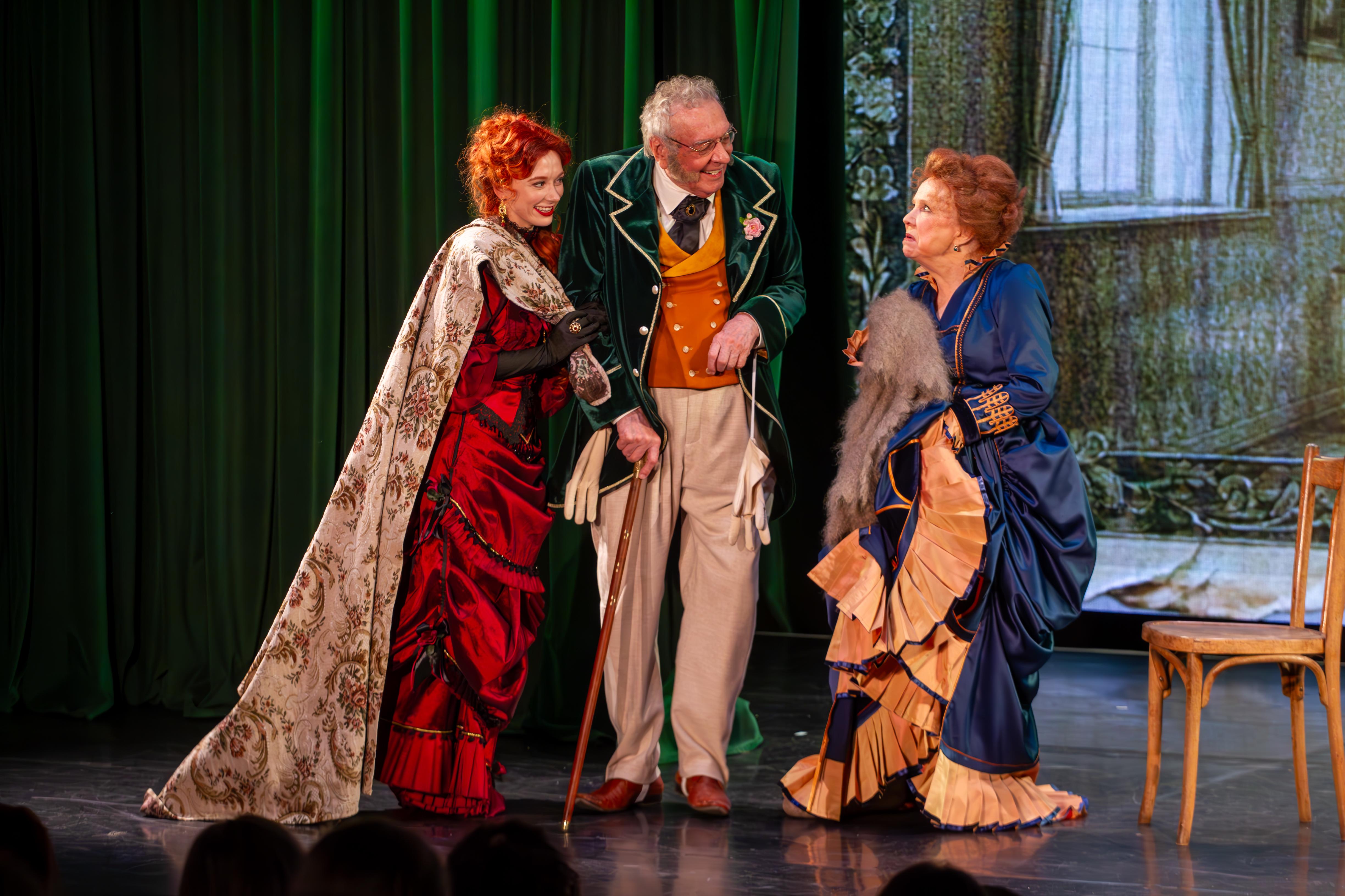 Художественное решение спектакля, разработанное художником-постановщиком Еленой Заяц, сочетает традицию и новаторство. Действие начинается в театральной ложе, создавая эффект «театра в театре»: герои на время разрушают «четвертую стену», обращаясь напрямую к залу, что усиливает вовлеченность и подчеркивает игровую природу происходящего. Кажется, еще немного – и они запоют, и мы станем свидетелями того, как прямо на наших глазах рождается столь популярный сегодня жанр мюзикла.