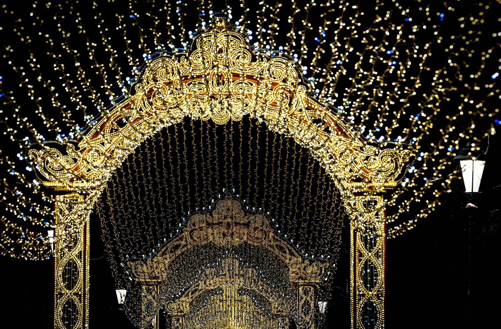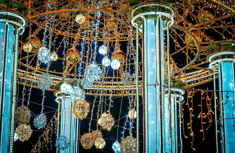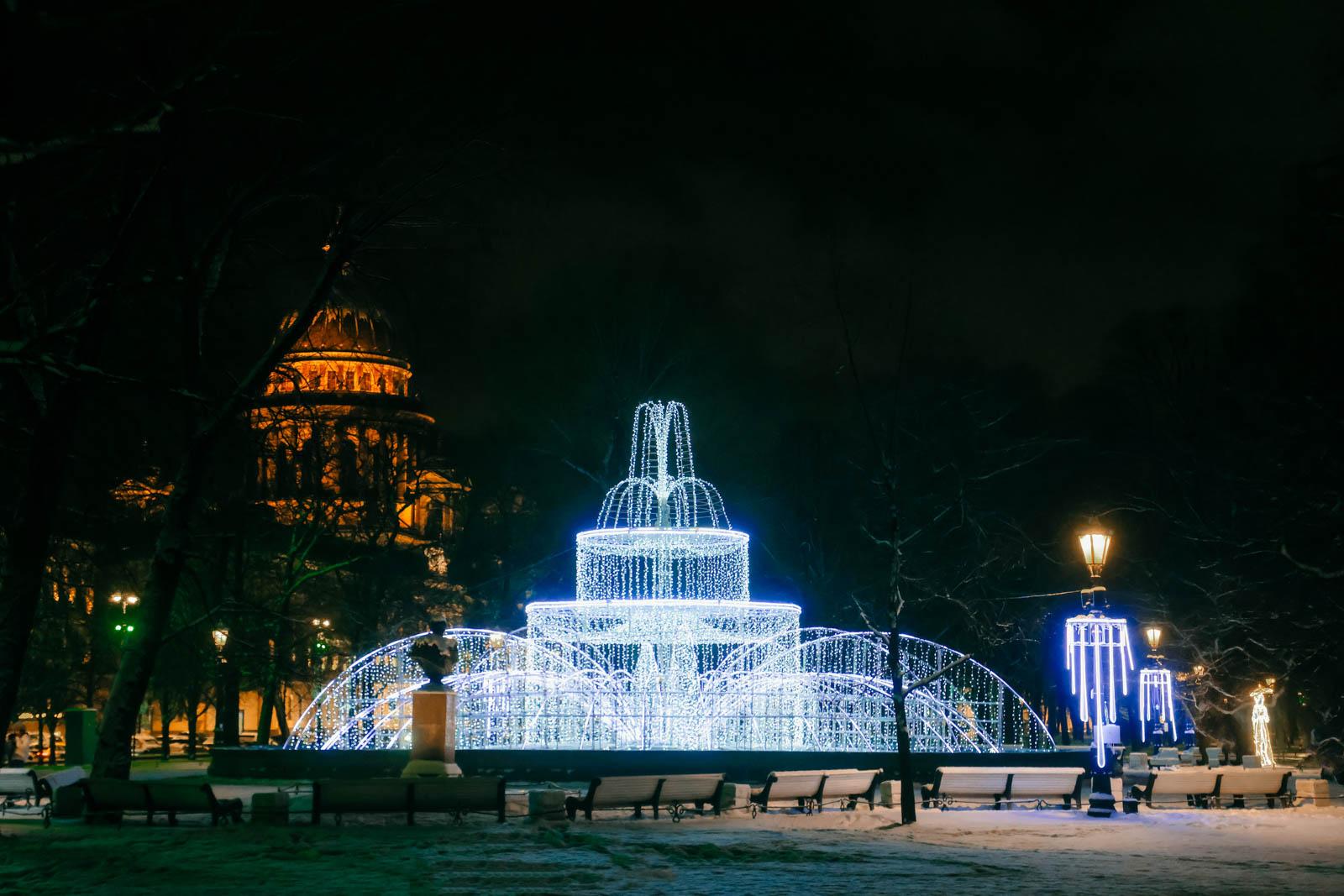 Несколько лет назад на Новый год в Александровском саду появился светящийся фонтан. Позже к нему добавили управляемое северное сияние. И в этом году нанесли последние штрихи – поставили девять светодиодных динамических арок в виде падающих звёзд на центральной аллее, ближе к Конногвардейскому бульвару появилось звёздное небо. Всего над центральной аллей Александровского сада теперь висят больше трёх тысяч сноуфоллов, создавая эффект падающего снега.