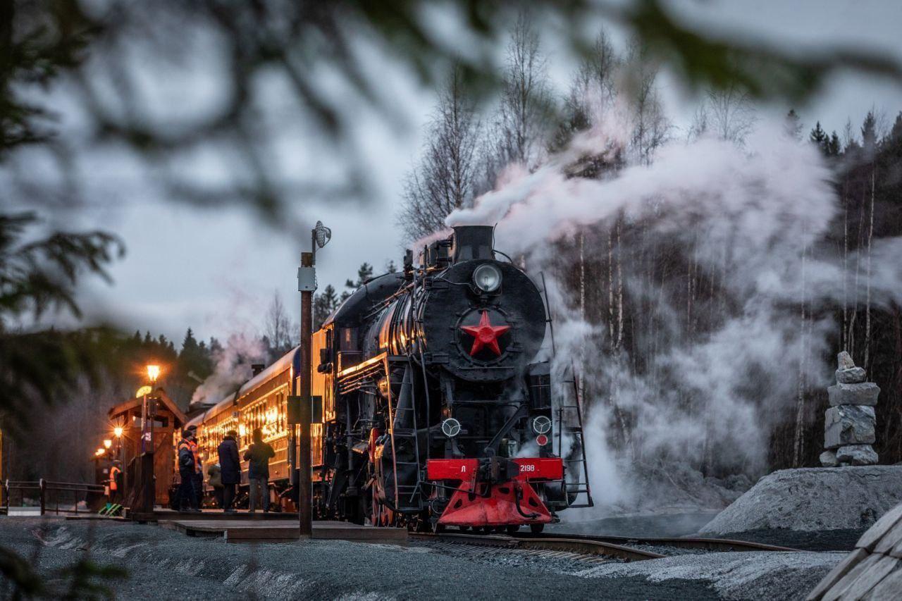 «Рускеальский экспресс» считается одним из самых узнаваемых туристических поездов Северо-Запада. Он следует к горному парку «Рускеала» и стилизован под составы начала XX века, что делает поездку особенно атмосферной.