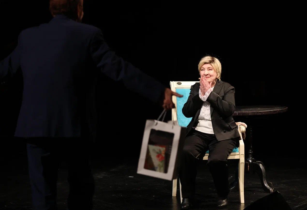 В юбилейный вечер, который стал, по сути, бенефисом актрисы, показали фрагменты из спектаклей, в которых она сыграла в разные годы. Сквозной нитью через них прошли «Старосветские помещики», где она исполнила роль Пульхерии Ивановны, в очередной раз доказав, что истинный талант и мастерство не подвластны времени.