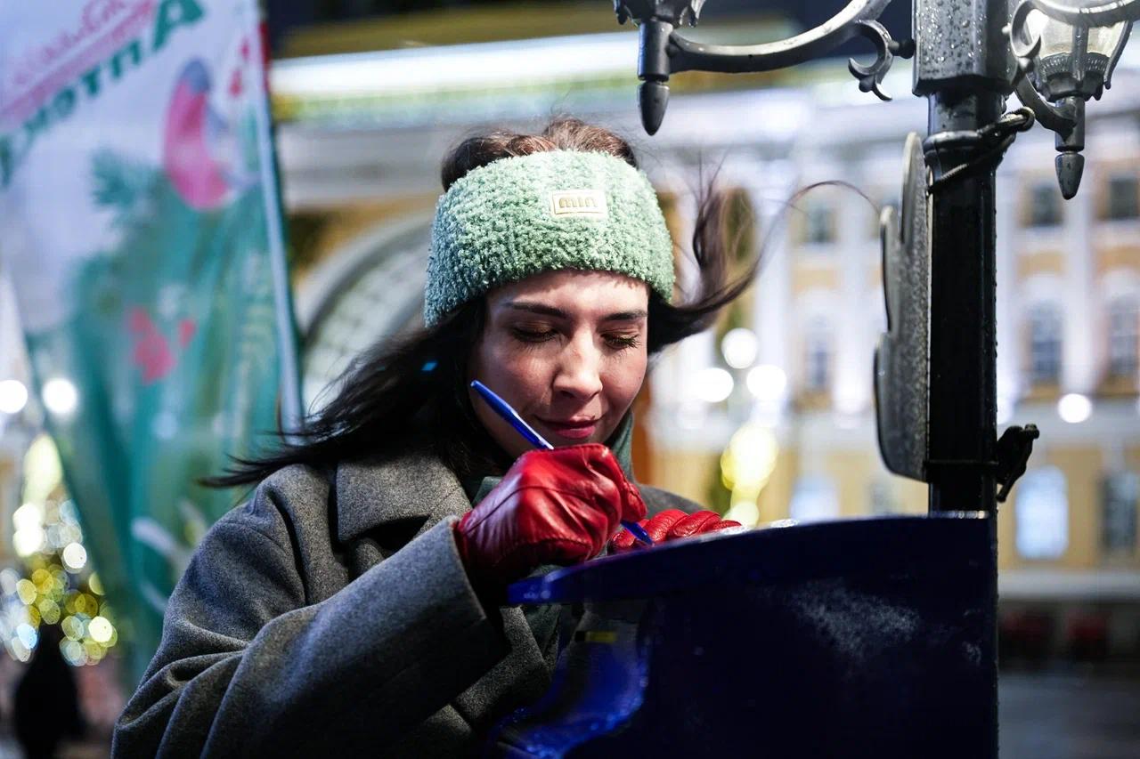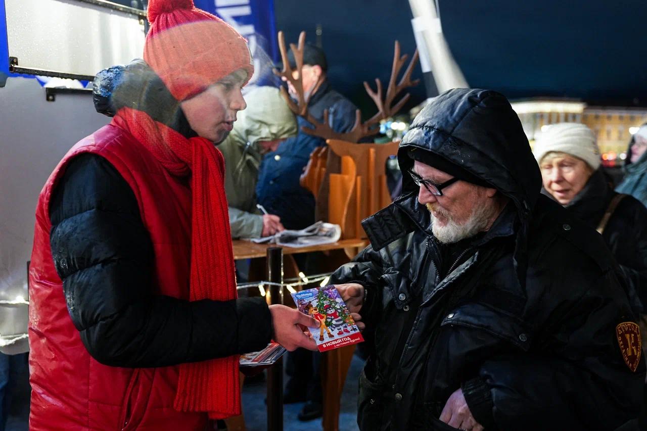 Напомним, 20 декабря на Дворцовой площади открылась пятая «Новогодняя почта» «Петербургского дневника». Это значит, что до 30 декабря включительно все желающие смогут бесплатно отправить открытку в любой населенный пункт нашей страны. Открытки выдаются бесплатно с 17:00 до 21:00, отдельно докупать марки не требуется. Каждый день работы почты будет посвящен определенной теме, сегодня это «Мой герой».
