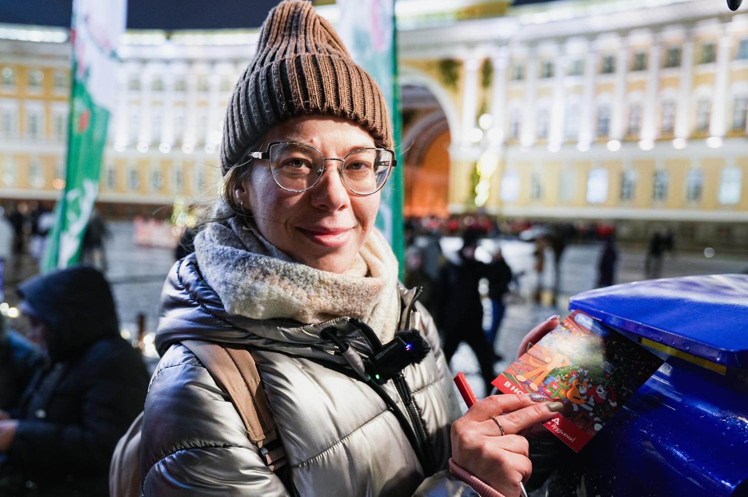 «Я очень люблю и отправлять, и получать открытки. Мы с друзьями регулярно ими обмениваемся, посылаем друг другу из путешествий. Сегодня я решила поздравить бабушку, она герой труда и тоже любит рукописные поздравления. Примерно полгода назад я отправляла ей открытку с вершины Эвереста, там работала «Горная почта». Я очень обрадовалась, узнав, что на Дворцовой площади работает «Новогодняя почта» «Петербургского дневника», и решила поддержать эту акцию. Говорят, что «Петербургский дневник» открывает почту и на время проведения «Книжного салона», если так, то я обязательно воспользуюсь и ее услугами тоже», – заверила она.