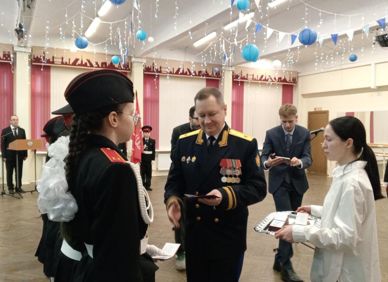 После произнесения клятвы ребятам вручил лично кадетские удостоверения генерал‑майор Института ФСБ Владимир Сидоров.