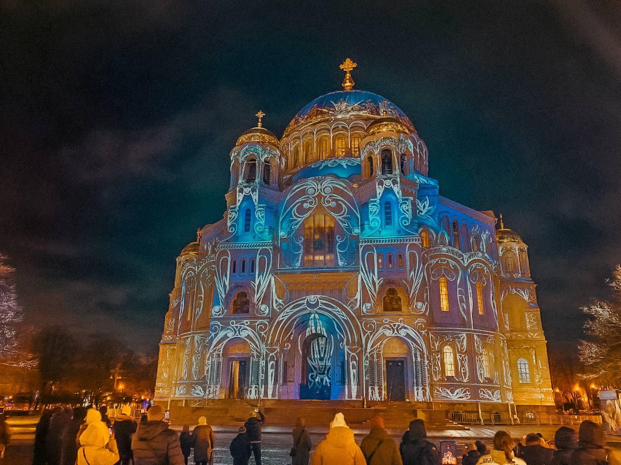 В Кронштадте началось новогоднее мультимедийное представление. На фасаде Морского собора на Якорной площади оживают образы, вдохновленные традиционными ремеслами и народным творчеством России. Свои работы представили художники – участники всероссийских и международных фестивалей цифрового искусства, а также мастера изобразительных искусств.