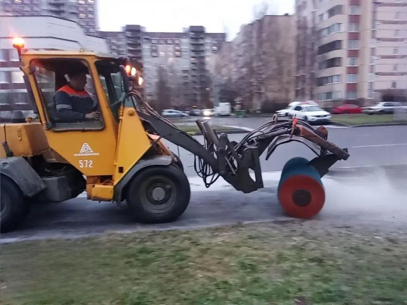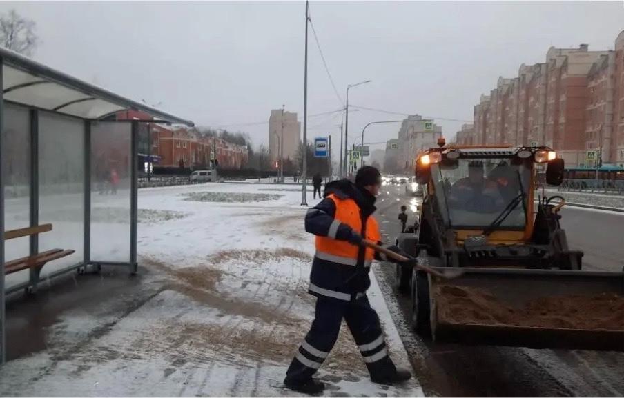 Поскольку ночью ожидается минусовая температура, обработка дорожного полотна противогололедными материалами выполняется заранее.