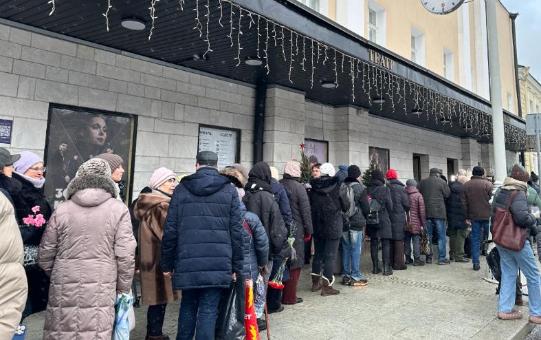 Поклонники собрались в огромную очередь у Театра Пушкина 29 декабря, за час до начала прощания с актрисой Верой Алентовой.