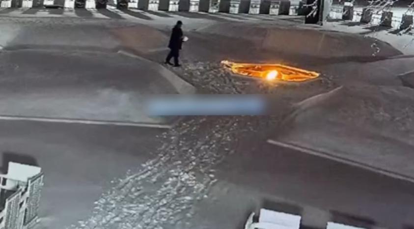 Полиция показала, как житель Киришей потушил снегом Вечный огонь