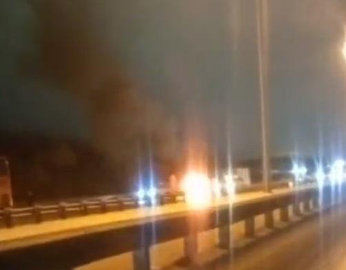 «Между проспектом Культуры и Парнасом на КАДе сгорел поло», – уточнили авторы поста в Telegram-канале «Мегаполис» и опубликовали видео.