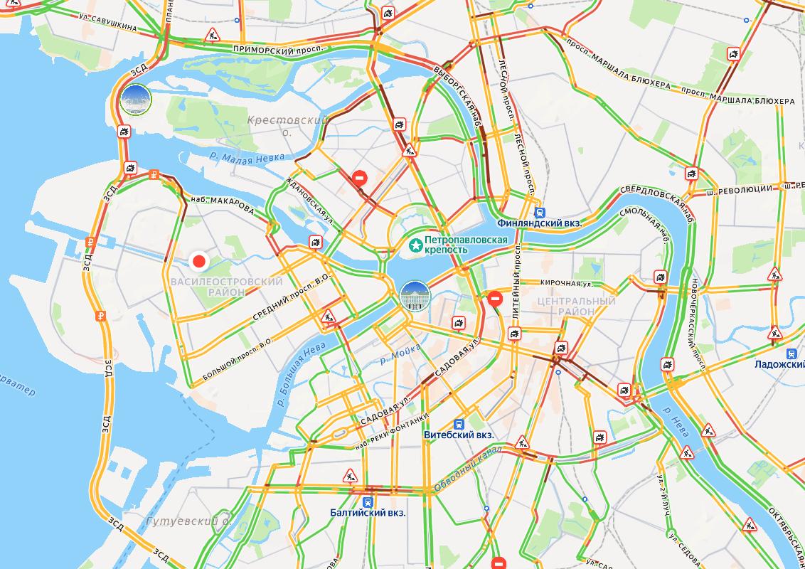 Накануне Нового года, 30 декабря вечером, Петербург встал в семибалльные пробки. Информация об этом появилась на сервисе «Яндекс. Карты».