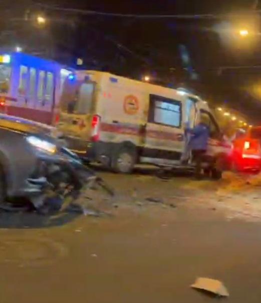 На кадрах видно, что один из автомобилей получил серьезные механические повреждения. Рядом стоит машина скорой помощи. Информация о пострадавших не поступала.