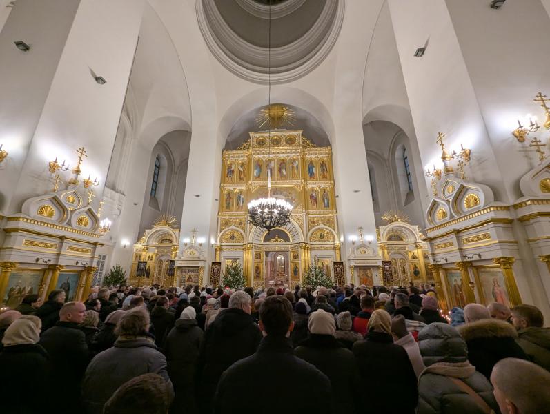 Во всех храмах России в ночь на 7 января прошли праздничные богослужения. Всенощное бдение, посвященное Рождеству, состоялось и в Екатерининском соборе под Петербургом.