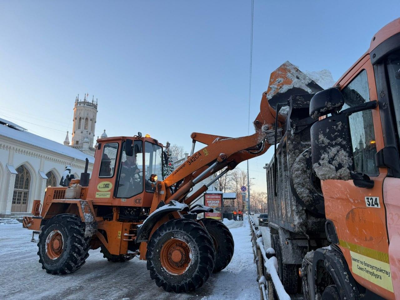 На Рождество Петербург вышли убирать около тысячи машин. Техника чистит магистрали, переулки, площади, загружает оставшиеся валы в самосвалы и отправляет на пункты утилизации, сообщили в городском Комитете по благоустройству.