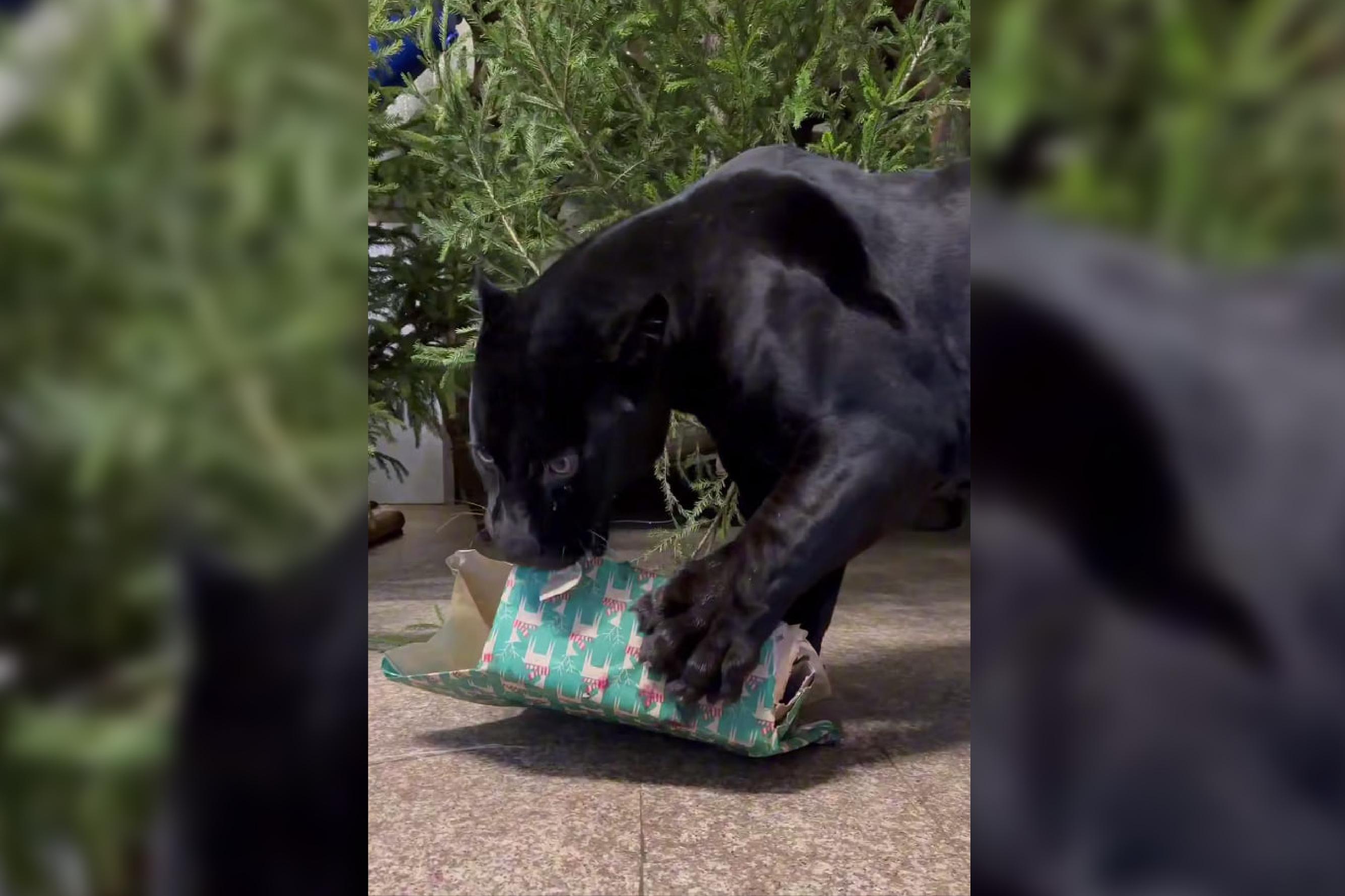 Хищники Ленинградского зоопарка «распаковали» новогодние подарки