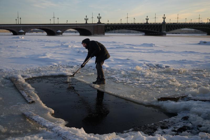 В этой полынье Катя купается по выходным. Фотокорреспондент «Петербургского дневника» запечатлел зимние купания петербурженки.