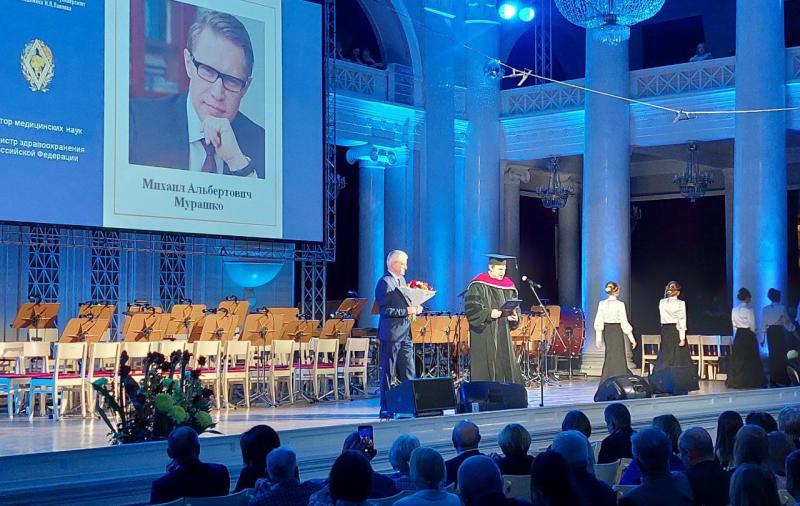 По традиции на Актовом дне также проходят торжественные церемонии вручения мантий и знаков почетных докторов ПСПбГМУ им. акад. И. П. Павлова и вручение наград Ученого совета ПСПбГМУ им. акад. И. П. Павлова, учрежденных в честь выдающихся представителей медицинских специальностей. Традиция продолжилась и сегодня. Первую мантию почетного доктора получил министр Михаил Мурашко. В числе награжденных также выдающиеся сотрудники знаменитого вуза.