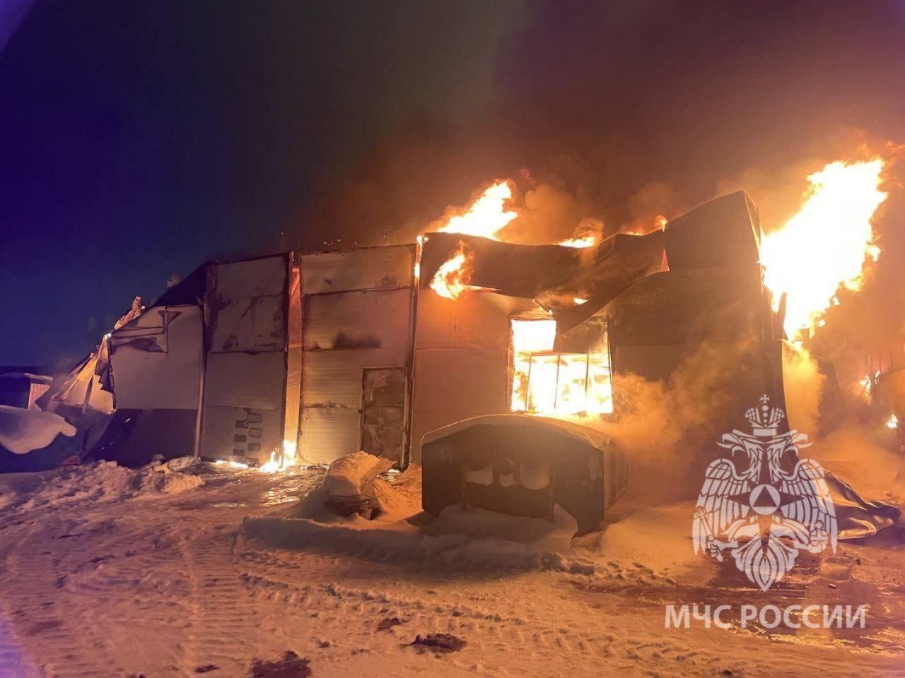 Видео: ангар, полыхавший в Ленобласти, потушили