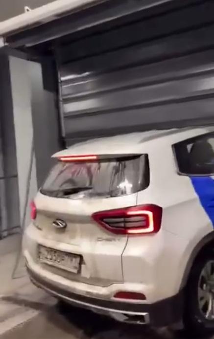 На кадрах видно, что автомобиль оказался зажат при въезде на подземный паркинг. За кадром девушка сообщила: «Они просто падают».