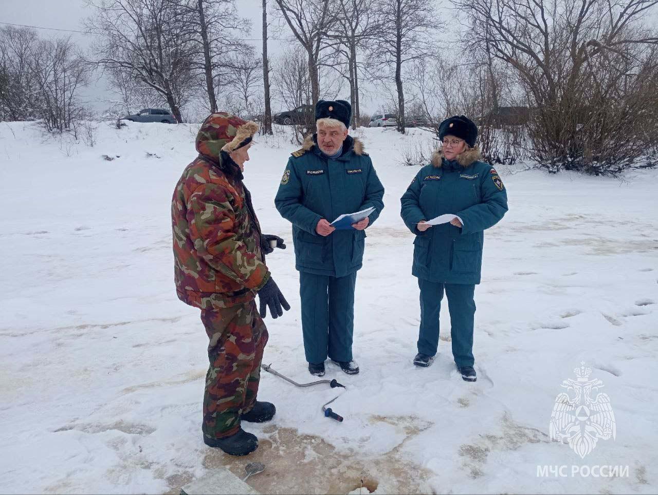 Во время профилактических бесед с рыбаками и отдыхающими сотрудники ГИМС подробно рассказали о рисках, которые невидимы для глаза. Спасатели вручают памятки и разъясняют алгоритм действий, если человек всё же провалился под лед.