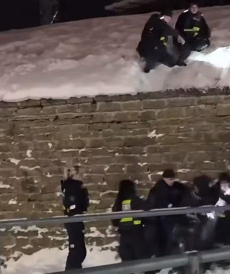 На видео очевидцы сняли, как хулиган кидается снежками, а затем начинает справлять нужду на стену.