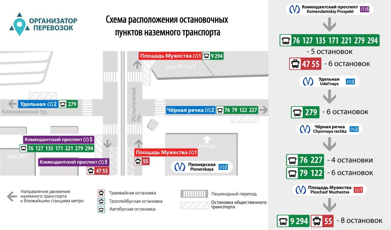СПб ГКУ «Организатор перевозок» рекомендует добираться наземным транспортом.