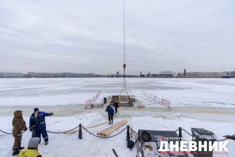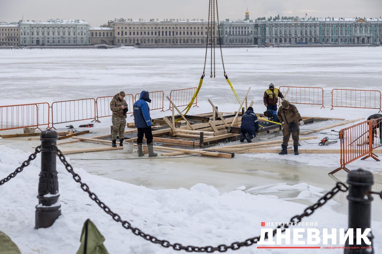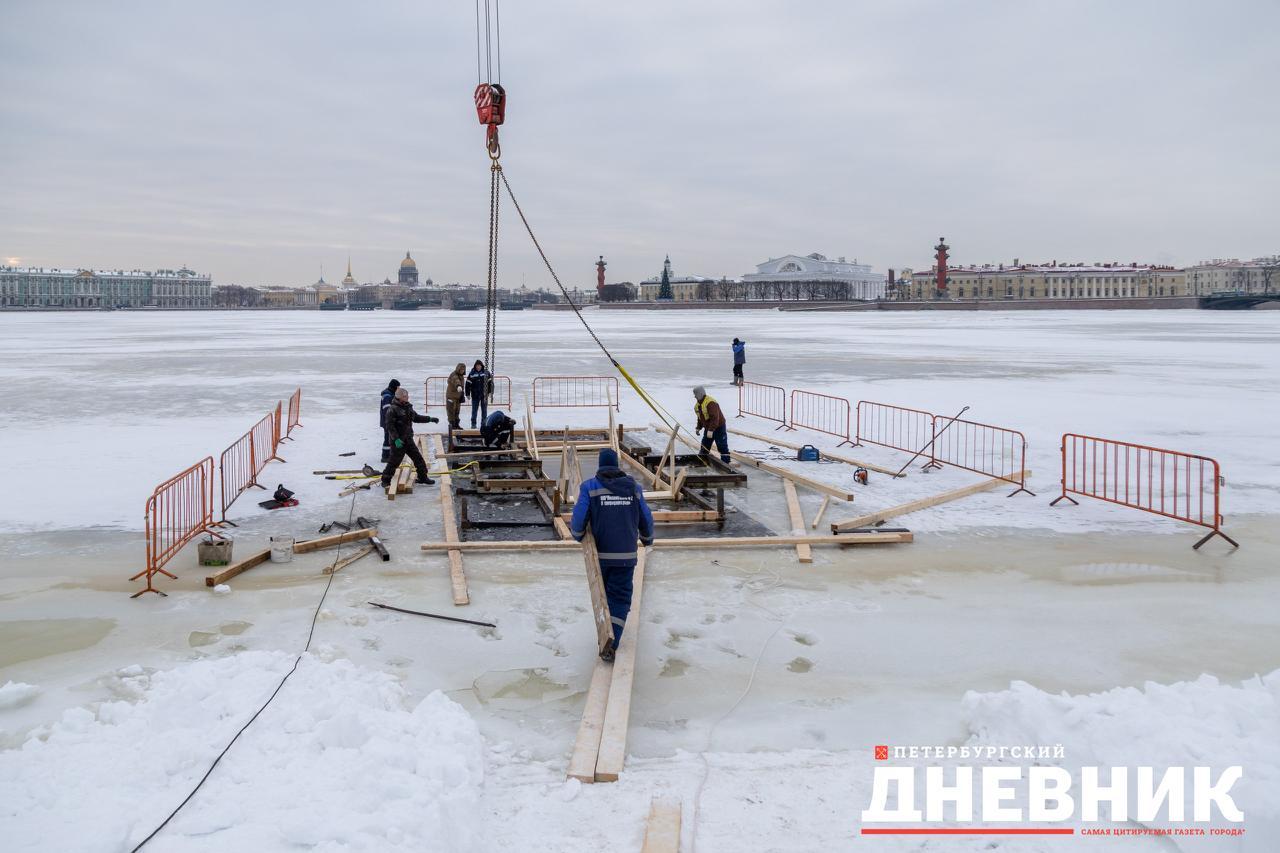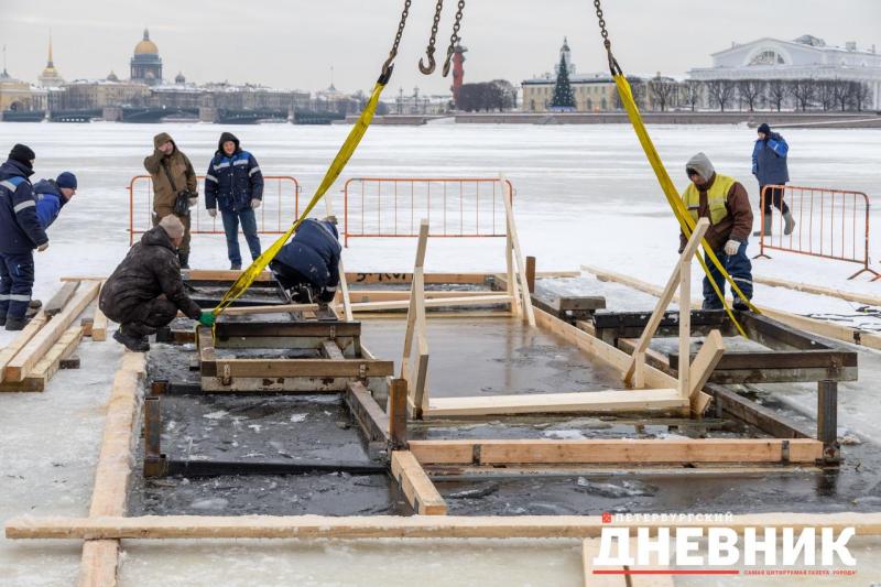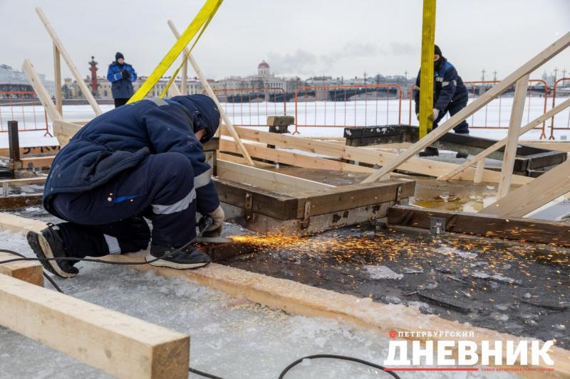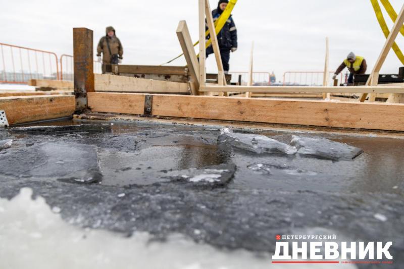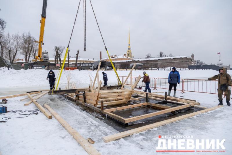 В Северной столице у Петропавловской крепости ведут работу по оборудованию главной городской купели. Фотокорреспондент «Петербургского дневника» запечатлел процесс.
